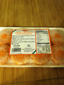 - Last week I ran across this "genius" thing in the freezer section of the grocery store. Little patties of Sweet Potatoes that could easily be taken out and thawed/microwaved individually for a quick and healthy snack/side. Sam loves sweet potatoes, and I love quick and healthy, so it was a win-win. I glanced at the nutrition facts as I threw the 99cent Styrofoam, shrink-wrapped tray into my cart, and went home feeling quite proud of my find - they only had 60 calories a patty, which must be the same as a fresh sweet potato, right? . (I mean, it's basically like homemade baby food, only without the making at home part.) Anyway, I've been feeding these things to my kid for a week, and tonight was the first time I happened to look at the ingredients... Yams (thank goodness), sugar, cornstarch, buttermilk, salt, natural and articial flavoring, yellow #6, red #40. UGG. Mommy fail. The Styrofoam and price tag should have been a dead give away.